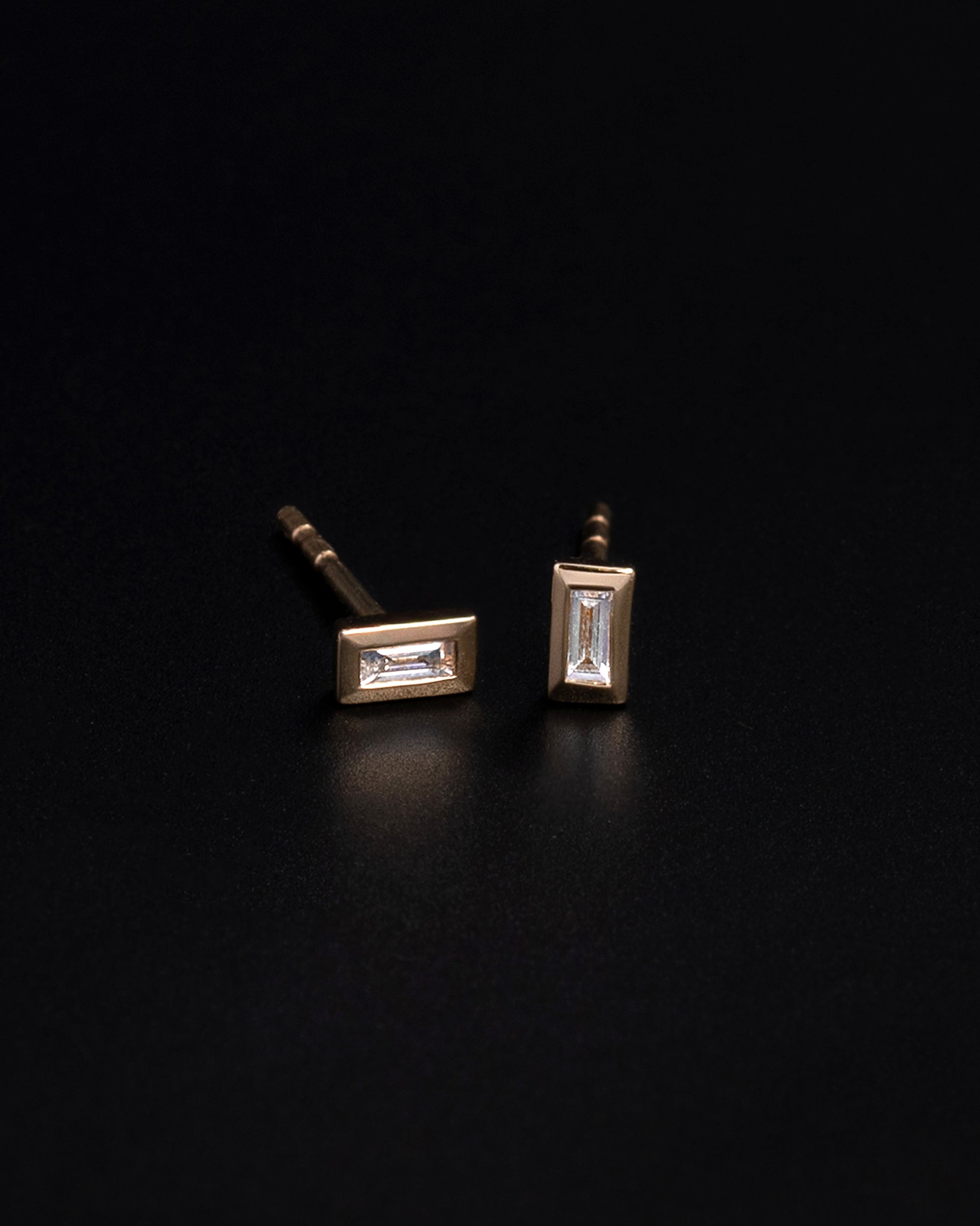 14k solid gold diamond baguette earring studs wear them day or night, these studs are so dainty and classic it will be your new obsession.