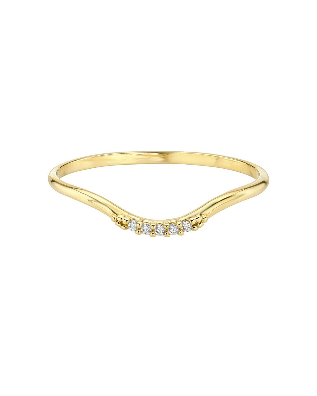 Add a touch of sparkle to your look with our Mini Diamond Row Curve Ring. Featuring 5 mini diamonds on a curved band made of 14k gold, this ring will add a unique and chic element to any outfit. Shine bright with this playful and stylish piece!